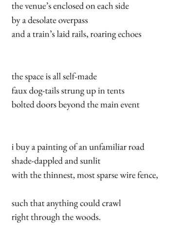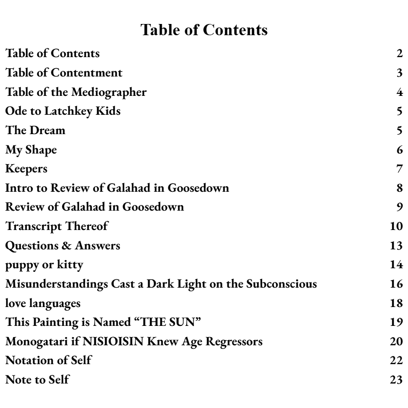 A compilation of text-based art pieces. Crystallized memory, raw & complete. Each such Working is delivered in its own distinct format; free-verse poetry, mock interview, ode, eccentric transcription method for rap lyrics... and more!
